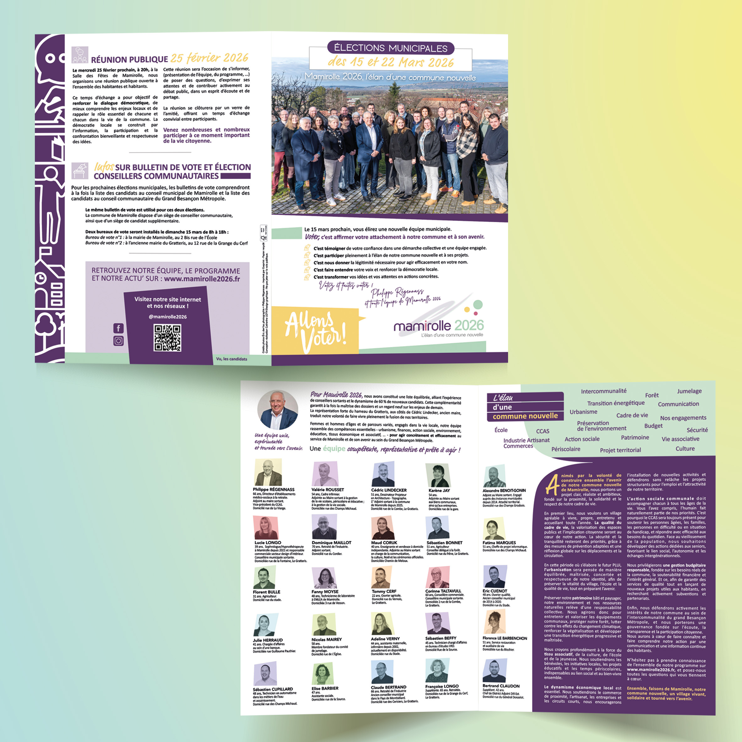 👉 Dans le cadre des prochaines élections municipales à Mamirolle (25), nous avons conçu un document de quatre pages présentant une profession de foi claire, structurée et accessible à tous.